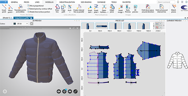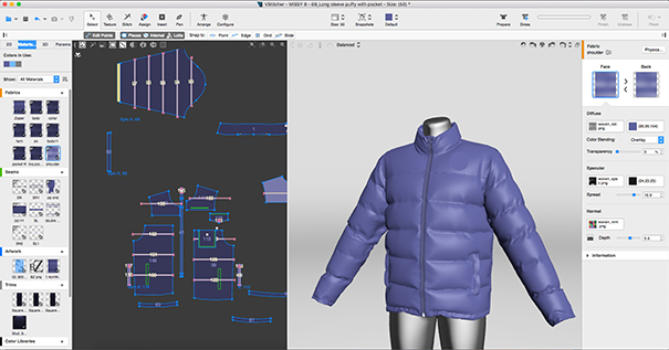 Thanks to the comprehensive integration with VStitcher, you can import any Create pattern model, filter what to import (e.g. what pieces) and use the same 2D data to create a photo realistic rendering of your clothing. This allows you to find any imperfections and correct it before production.