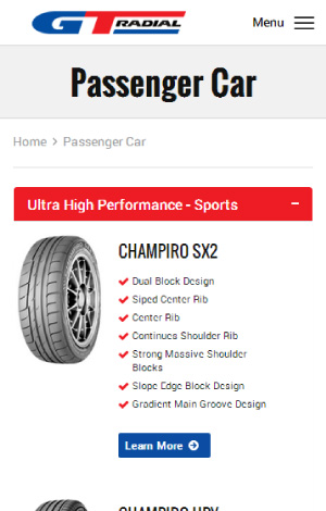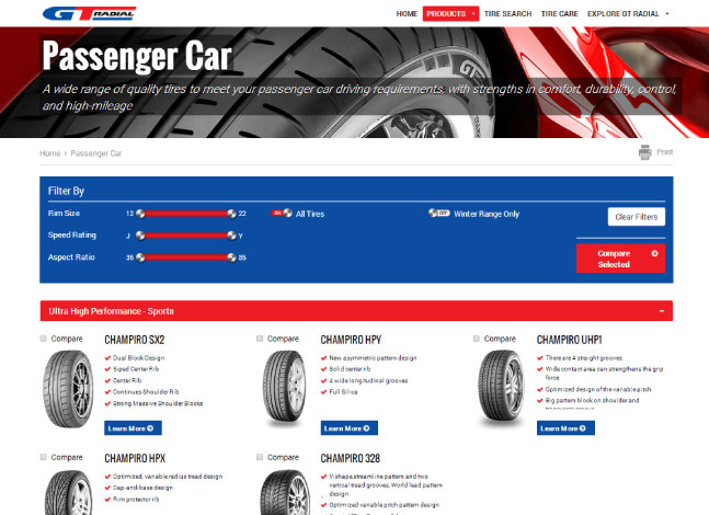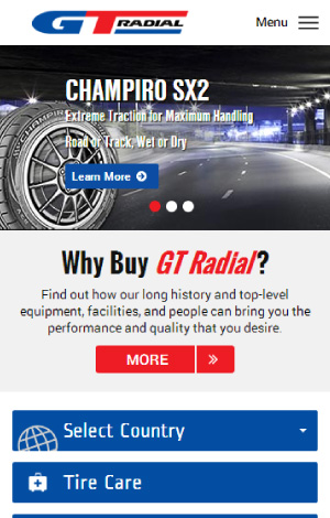 GTRadial.com - Fully Responsive brand website for one of the worlds largest tire manufacturers.