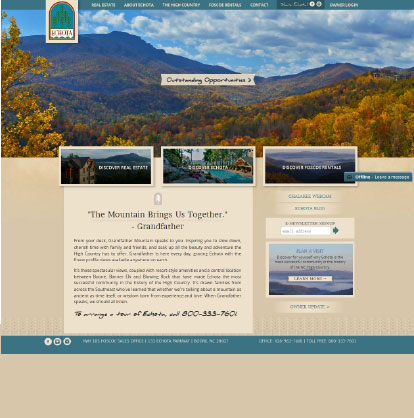 - Website is focused on impressive imagery to help promote the beauty of the environment and the real estate.