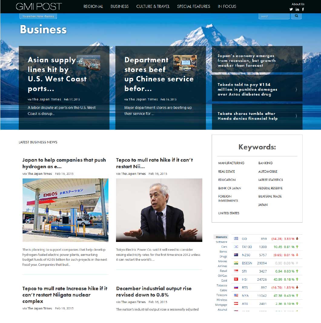 Because of the very unique nature of the website and their needs we built a completely custom solution from the ground up. We created a custom Content Management System to control and influence the variables filtering the news, manage incoming news items and override the algorithm default results if desired, and to add GMI's own news items and affect how and where they entered the ongoing new stream.