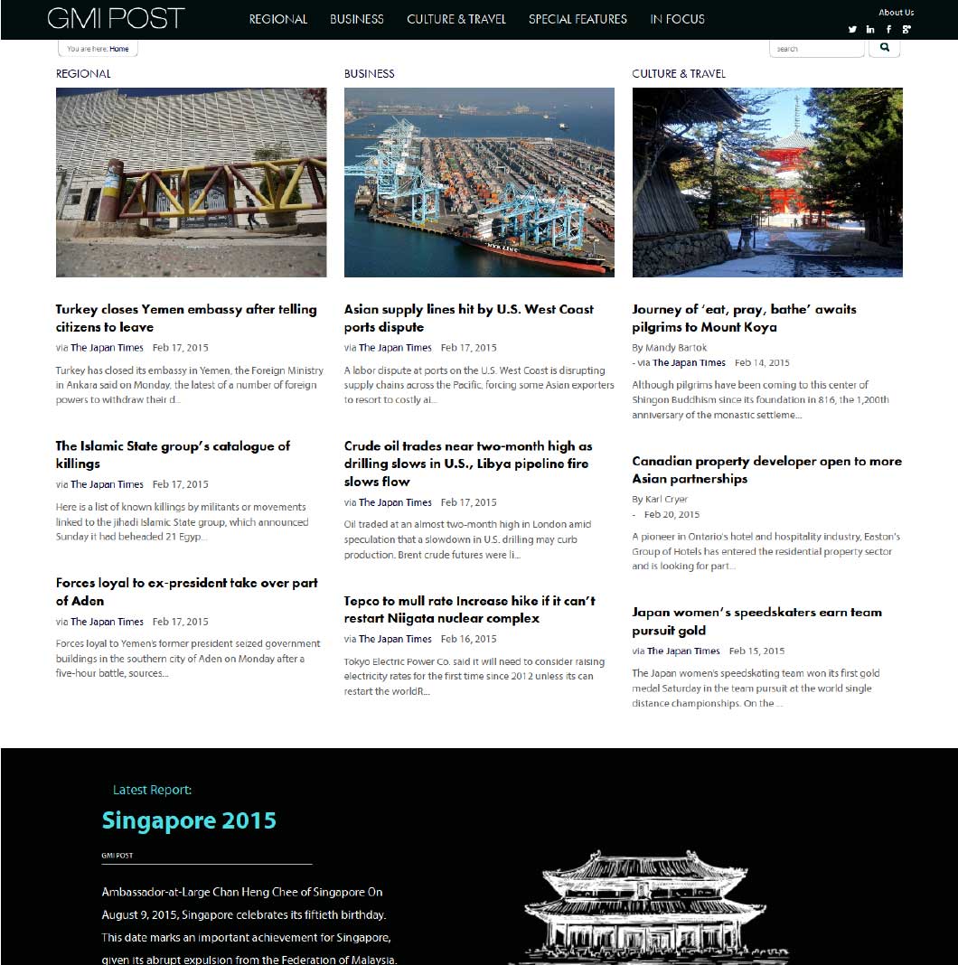 The GMI team sought to do something unique: create a website portal for news that integrates news from 2 main sources plus RSS feeds from other main sources, all combined seamlessly with their own produced news. The website needed to filter and segregate news articles depending on their content, region or topics discussed and other parameters. Critically, the website needed to run automatically without any daily guidance or input, thus requiring logic to continuously update and refresh the sections based on algorithm.