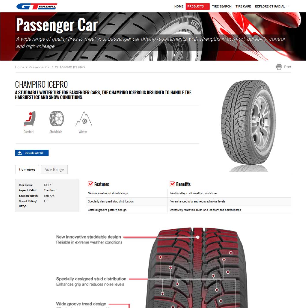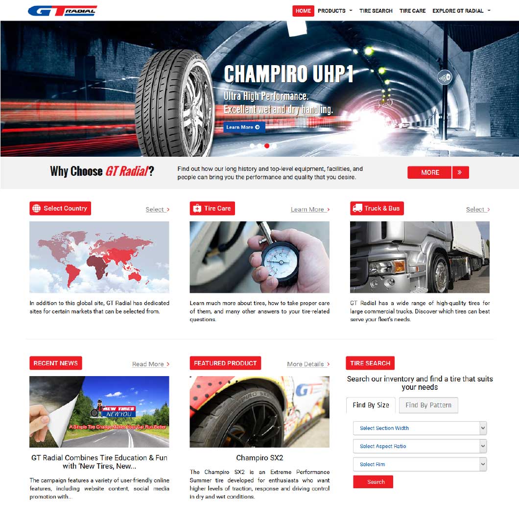 One of the world's largest tire brands (parent corporate company is Giti), GT Radial needed a new global website to modernize their product and company presentation including functionality for mobiles and tablets.