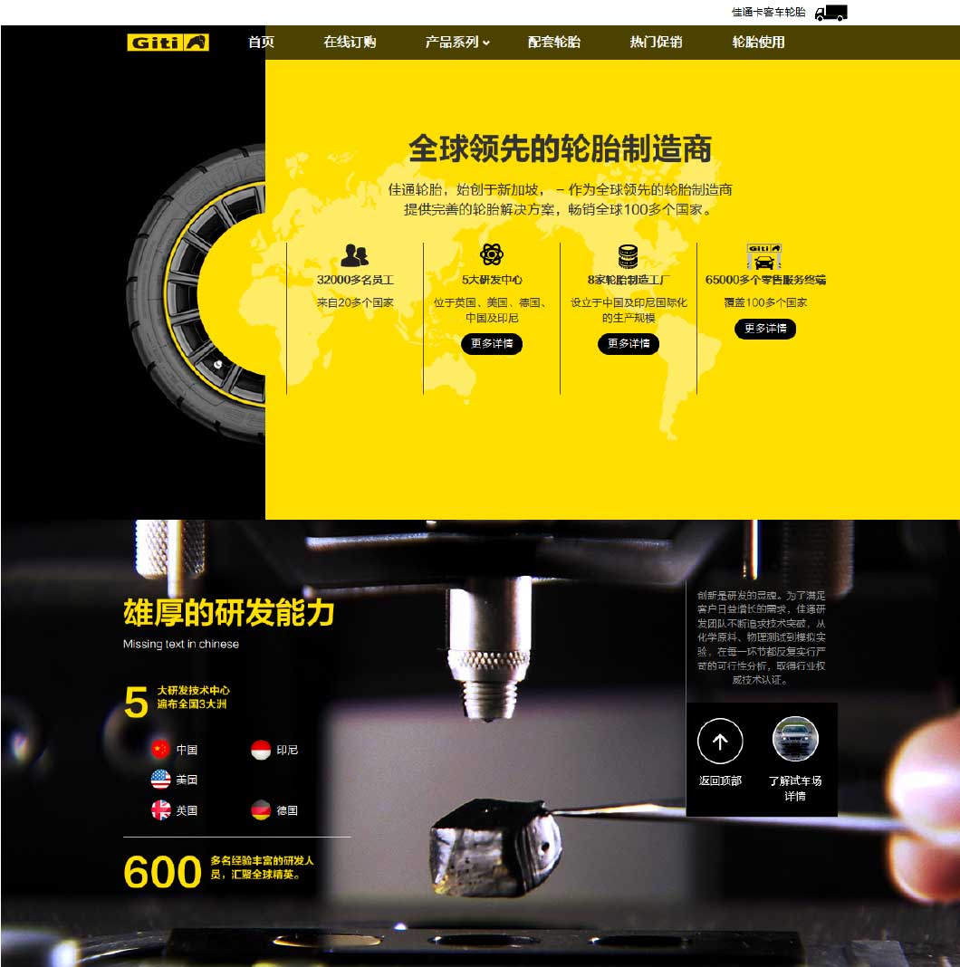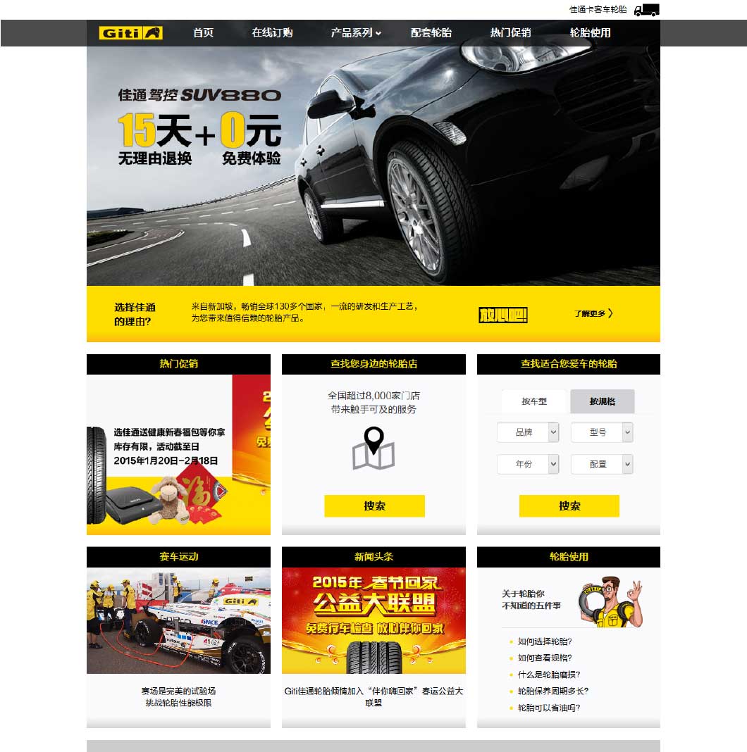 Giti is one of the largest tire manufactuers in the world and we developed the entire redesign of their extensive website. The site includes multiple web application functions and complications. We created the system to show the participation, varying specials, driving direction, opening hours and more for their over 8000 dealerships in China.