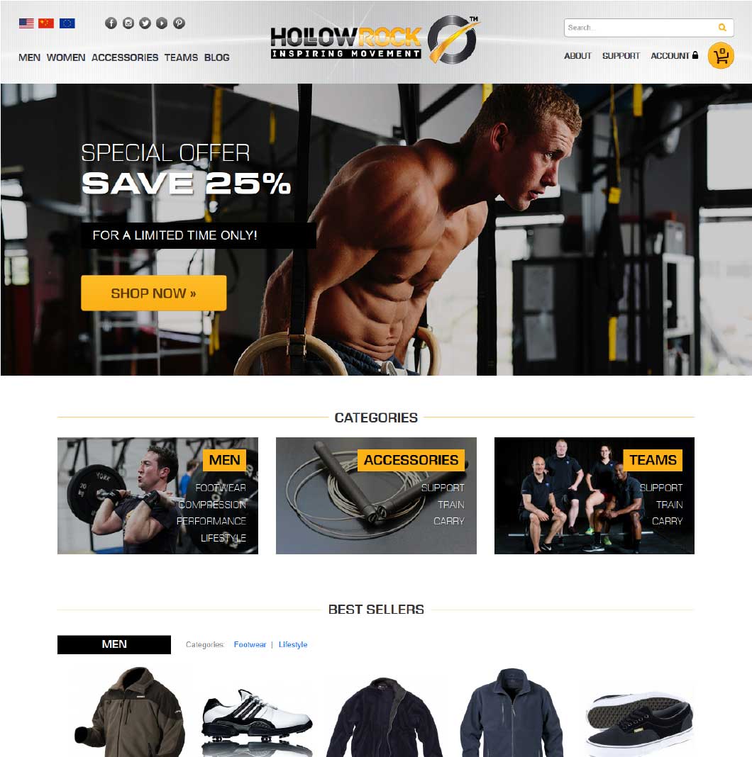 Hollow Rock is a new sportswear brand launching in the US and China focused on Crossfit equipment and culture. We custom designed the website branding and developed their solid ecommerce site with Magento. A key requirement for the client was advanced tailored sales, revenue and item stock management and trends analysis so we have customized the administration and backend functions for these needs.