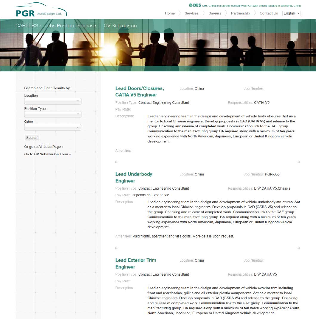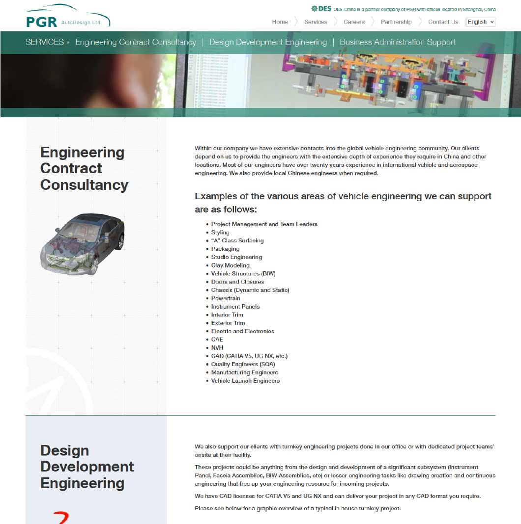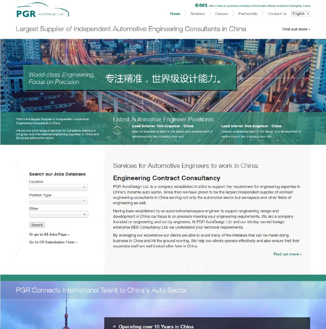 PGR Auto Design is the largest automotive engineering consultancy and placement firm for engineers in China and required a site that reflected their industry and services niche. We were challenged to maintain their previous corporate identity but with a new face and did a complete rebranding for them including logo and website design.