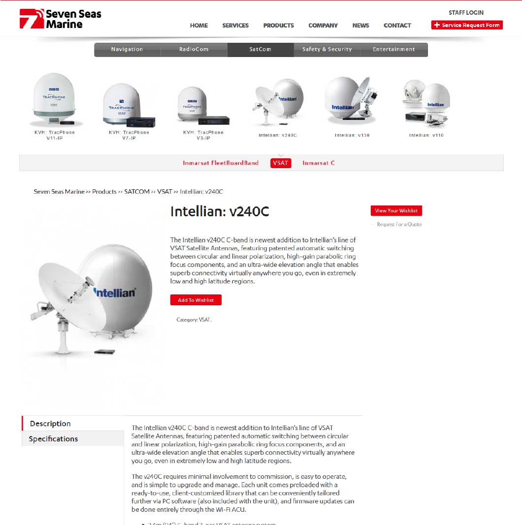 E-Commerce website designed and developed by Seirim which features visually very unique ‘one shelf’ product search system, animations and functionality that live feed all products into one horizontal selection area where all products can be quickly filtered and searched at a glance. The complex e-commerce website and web application includes Service Request Forms for ship managers to request services on their ships coming into port directly from the website, Request for Quotes on equipment products, Latest News system and an array of further web application features.