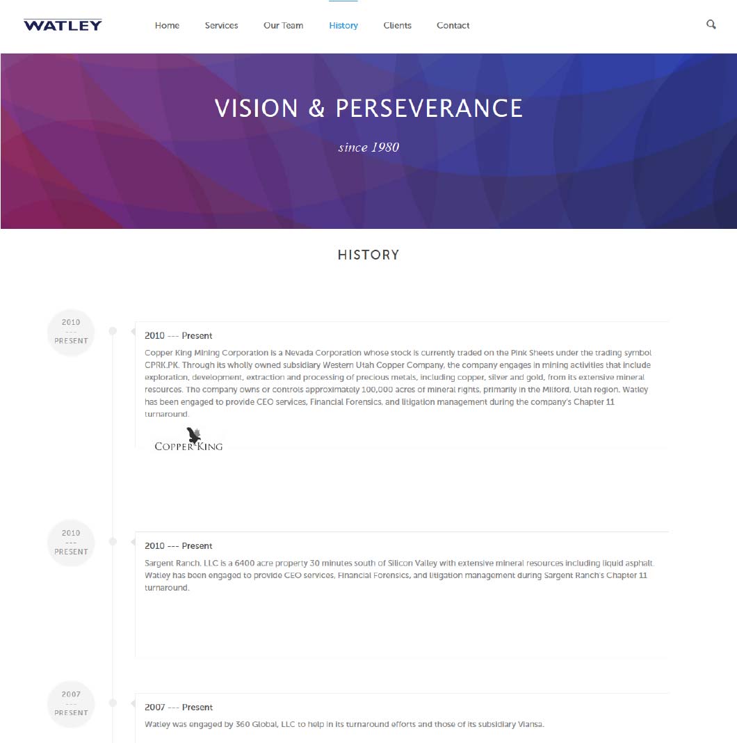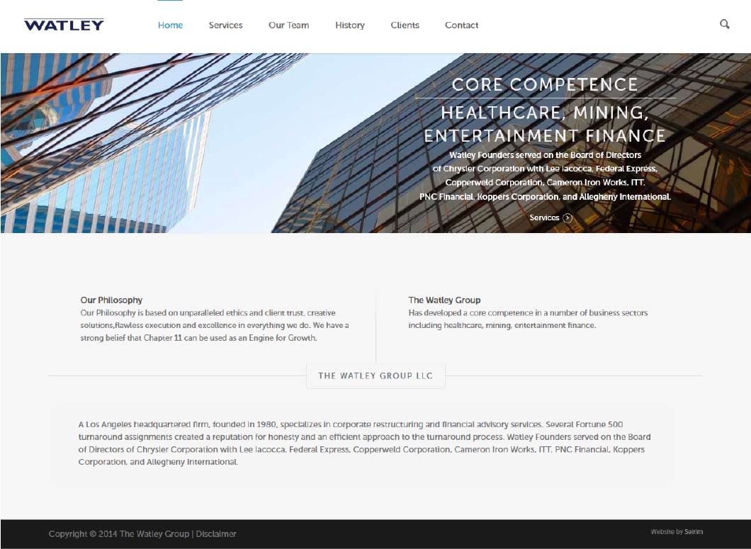 Watley is a Los Angeles headquartered firm that specializes in corporate restructuring and financial advisory services to a range of companies including multiple Fortune 500 companies and many in healthcare, mining and entertainment finance. They required a website whose design and usability exuded class and stability.