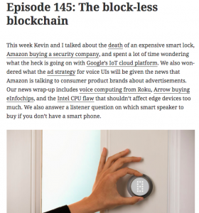 这档节目并非所有的讨论都是针对智慧家庭。 但是对于那些对物联网和相关技术感兴趣的人们仍然是一档很好的节目。