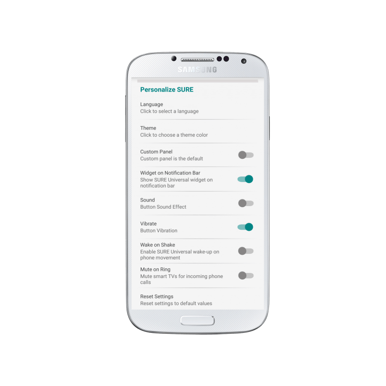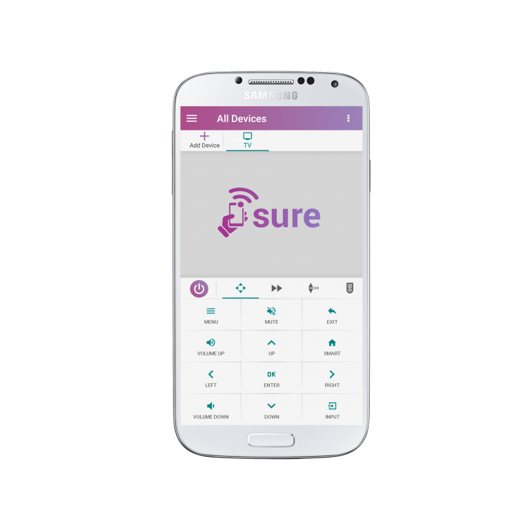 Once you have added all your devices to the SURE Universal remote, you can access the remote that you are using directly from the Notification bar.